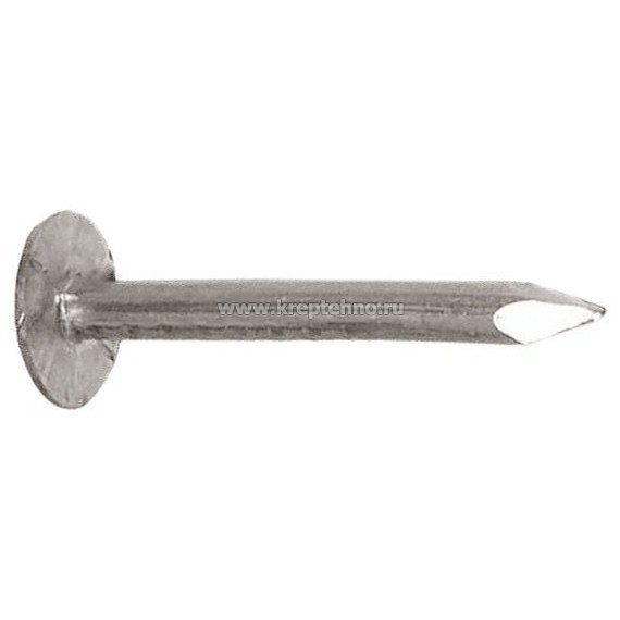 Предназначен для крепления толя, других тонких материалов к деревянной основе. Тонкий круглый стержень и увеличенный диаметр головки позволяют работать с рубероидом, тонкой жестью.
