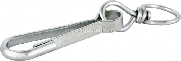 Карабин пружинный (Тип А) с вертлюгом состоит из пружинной защелки грушевидной формы (карабина) на одном конце изделия и компенсатора вращения (вертлюга) — на другом.