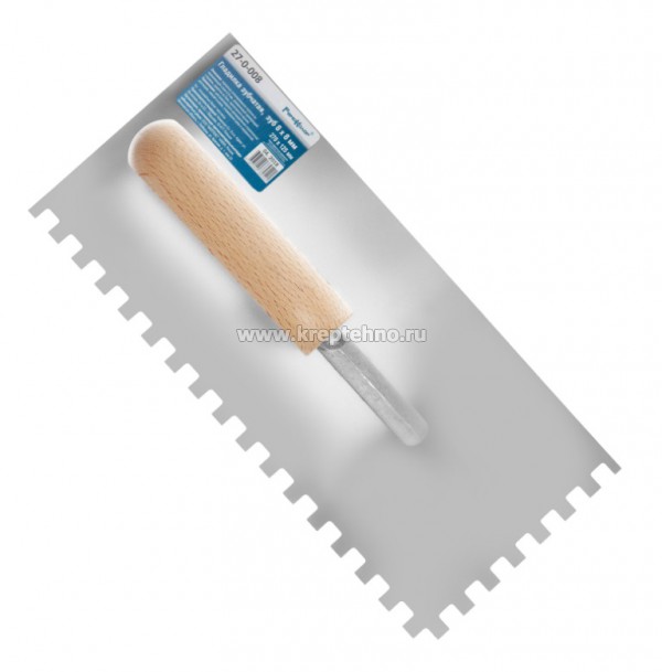 Кельма нержавеющая сталь 270*125мм зуб 8*8мм с деревянной ручкой из бука