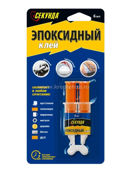 Купить Клей Секунда эпоксидный прозрачный в Екатеринбурге и Свердловской области можно в сети магазинов КРЕПЕЖ-СИТИ.