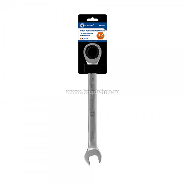 Ключ комбинированный трещоточный 12 мм КОБАЛЬТ 642-524, предназначен для отвинчивания/завинчивания мелкого резьбового крепежа с шестигранными головками при производстве строительных, электротехнических, монтажных и автосервисных работ.