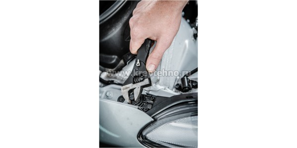 Ключ отличается инновационным храповым механизмом, позволяющим быстро и легко работать, не перекладывая ключ на другую грань гайки. Можно работать с трещоткой, либо заблокировать данную функцию.