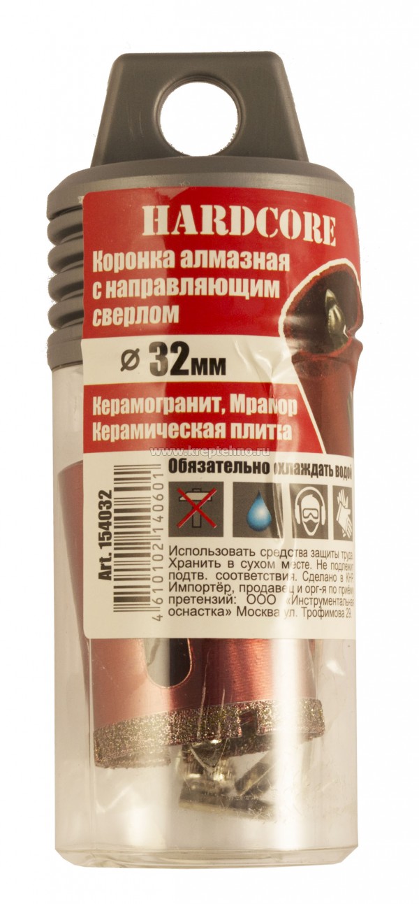 Коронка алмазная Hardcore 154... применяется для сверления керамогранита, керамической плитки, мрамора и камня.