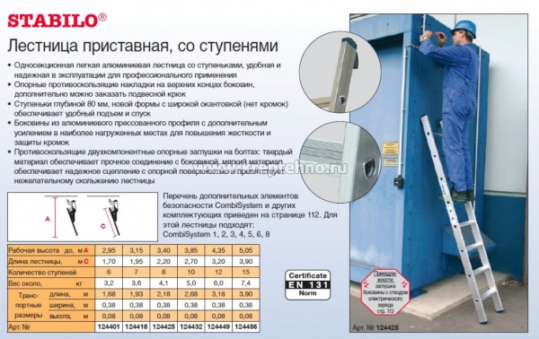 Лестница приставная 7 ступенек, рабочая высота 2,9м, STABILO KRAUSE