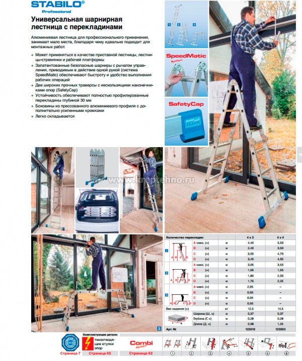 123510** Лестница шарнирная телескопическая 4х3 перекладины, раб. высота 4,4м STABILO KRAUSE шт 12.5 Под заказ 23380 23380 Уточнить цену