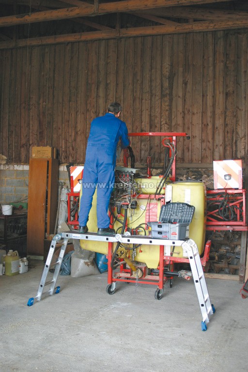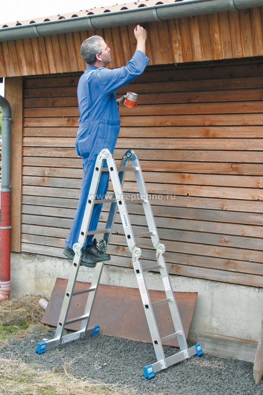 • Может применяться в качестве приставной лестницы, лестницы-стремянки и рабочей платформы
