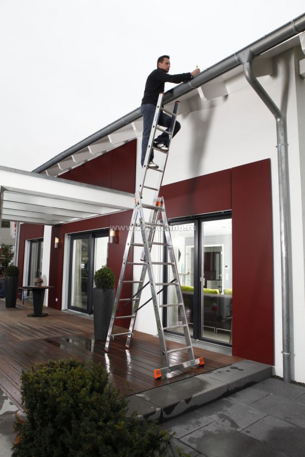 Лестница универсальная 3-х секционная 8 перекладин с дополнительной функцией, TRIBILO KRAUSE Трехсекционная универсальная лестница используется как приставная или выдвижная лестница, а так же как стремянка с выдвижной частью.