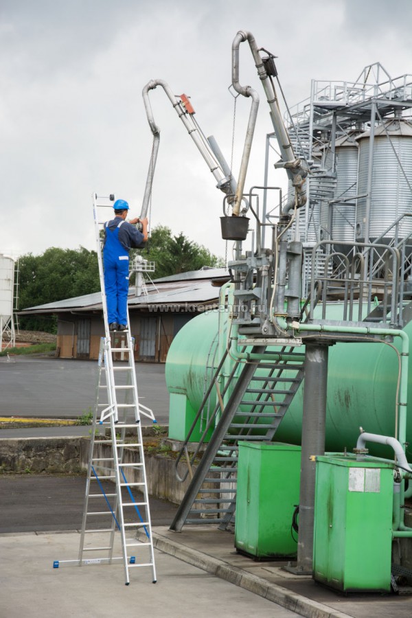 Лестница универсальная 3-х секционная 12 перекладин, раб. высота 4,4-9,3м, длина 3,55-8м, STABILO KRAUSE Трехсекционная универсальная лестница для профессионального использования. Используется как приставная или выдвижная лестница, а так же как стремянка с выдвижной или съемной частью.