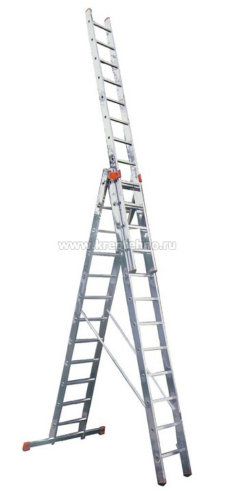 Лестница универсальная 3-х секционная 12 перекладин, раб. высота 4,4-9,3м, длина 3,55-8,6м, TRIBILO KRAUSE Алюминиевая трехсекционная лестница с перекладинами, универсального применения: может использоваться как приставная и выдвижная лестница или как стремянка