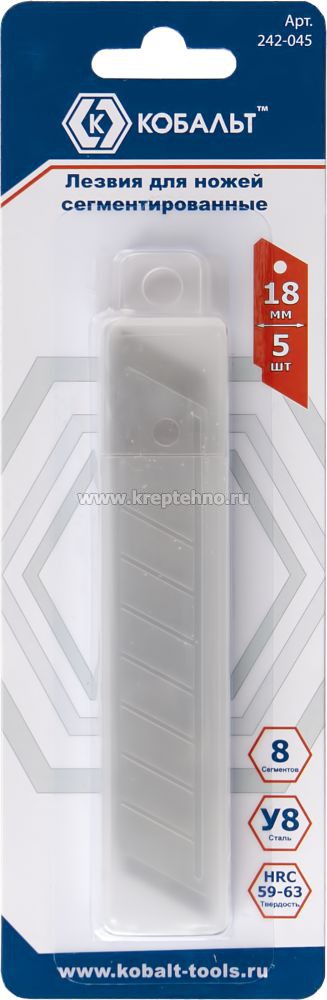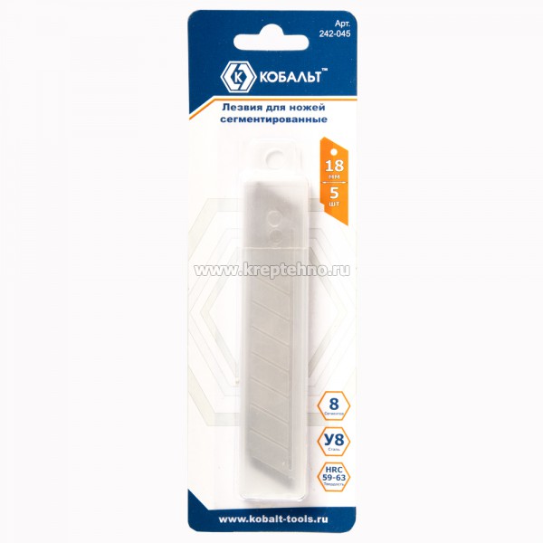 Отламывающиеся лезвия 18мм сталь У8, 8 сегментов (упак. 5шт). блистер, КОБАЛЬТ