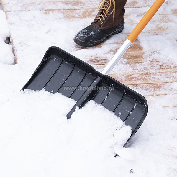 Ковш изготовлен из полипропилена. Выпуклые ребра на ковше не позволяют мокрому снегу прилипать.