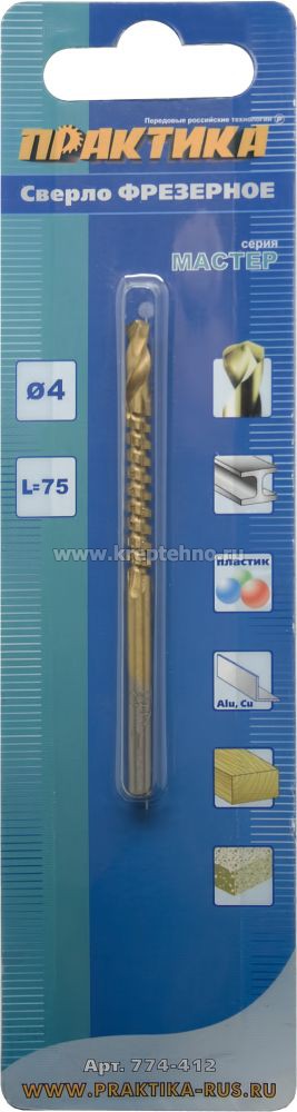 Сверло фрезеровальное универсальное 4х75 мм ПРАКТИКА