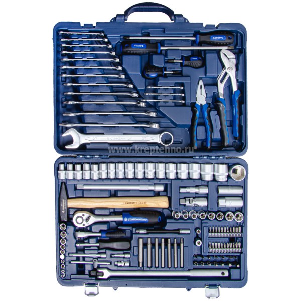 В наборе собраны инструменты общего назначения, необходимые для работы в гараже, мастерских и автосервисах.