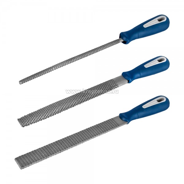 Рашпили №2, набор 3 шт., 200мм, двухкомпонентная рукоятка, КОБАЛЬТ