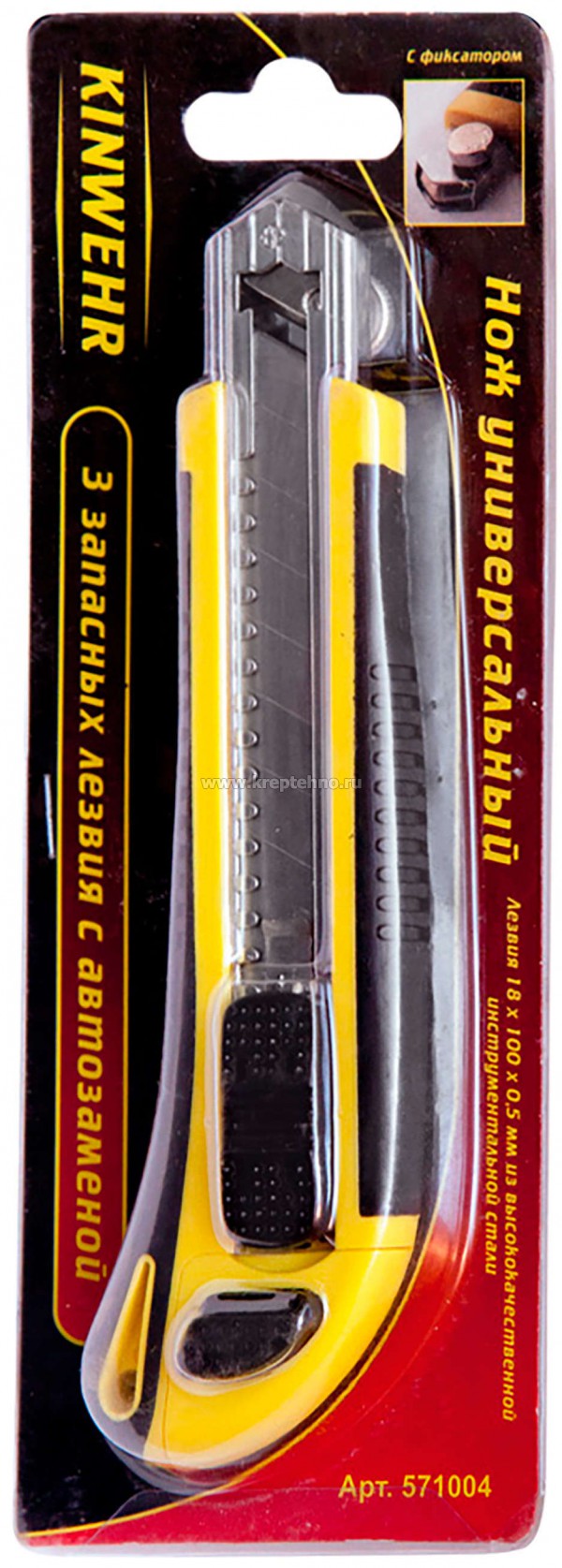 Нож широкий 18мм с отламывающимся лезвием, обрезиненный корпус с фиксатором и автозаменой, Kinwehr