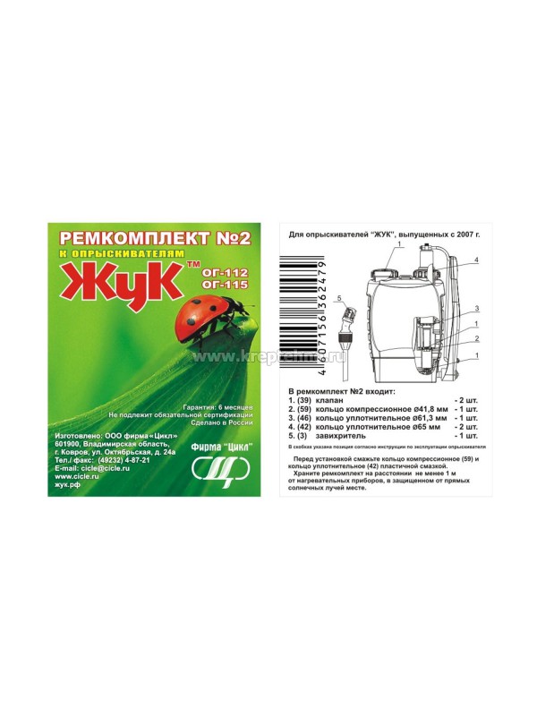 Купить Ремкомплект № 2 к опрыскивателям ОГ-112, ОГ-115 в Екатеринбурге и Свердловской области можно в сети магазинов КРЕПЕЖ-СИТИ.