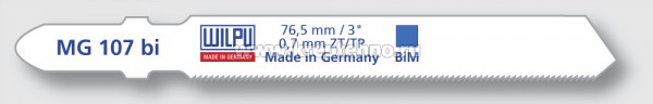 Пилки для лобзика MG 107 bi (Т118G) сталь 0,5-1,5мм, Bi-met, рез 55мм (5шт/упак.) WILPU /Германия/