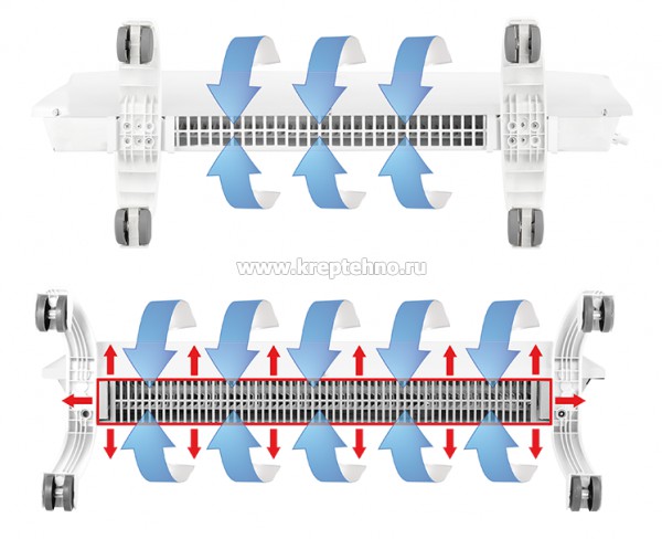 • Запатентованная конструкция жалюзи обеспечивает равномерную конвекцию, снижает температуру корпуса и предотвращает попадание мелких частиц внутрь конвектора.
