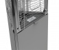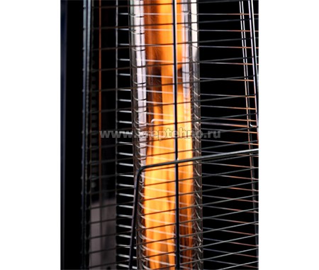 Высота в рабочем состоянии составляет 2 м 20 см, что не позволит человеку среднего роста обжечься – поскольку дотянуться до самой горячей незащищённой точки газового уличного обогревателя, расположенной в самой верхней части изделия – на отражателе и на дефлекторе из нержавеющей стали, предотвращающем высекание открытого пламени – будет достаточно проблематично