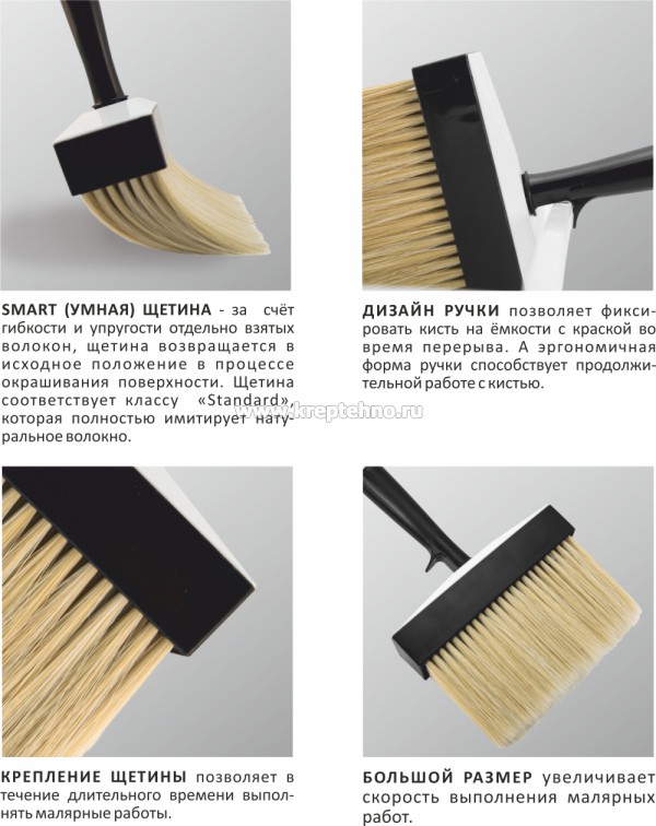 Кисть ракля предназначена для больших объёмов работ. Универсальная кисть для непрофессиональных маляров.