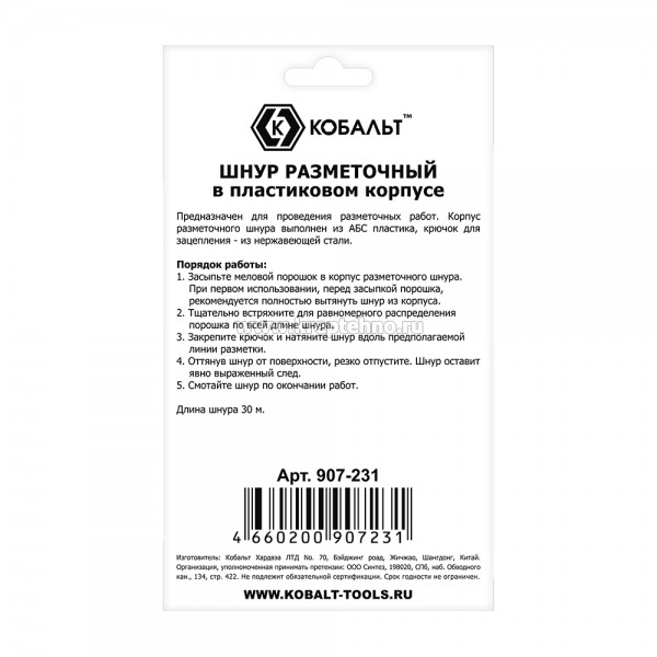Купить Шнур разметочный в корпусе КОБАЛЬТ в Екатеринбурге и Свердловской области можно в сети магазинов КРЕПЕЖ-СИТИ.
