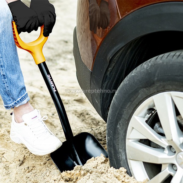 Лопата совковая укороченная Plantic Terra подходит для работы с сыпучими материалами, песком, гравием итд.