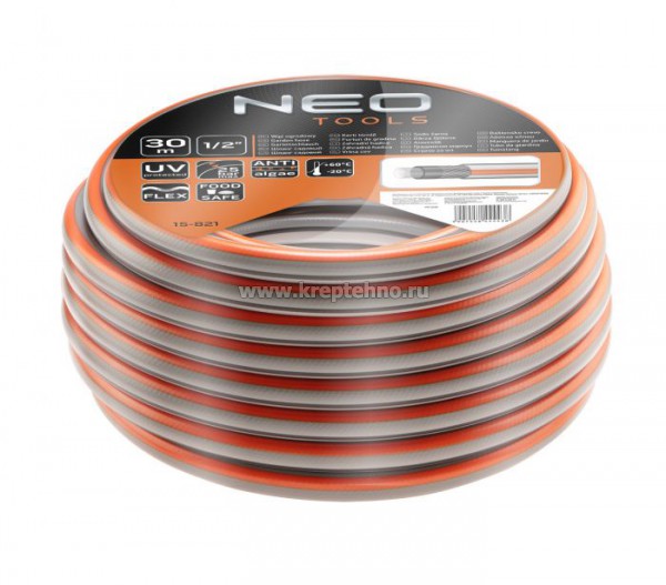 Шланг садовый 1/2" x 30 m, 4-слой NEO OPTIMA, изготовлен из эластичного ПВХ и полиэфирной пряжи, с двойной перекрестной оплеткой