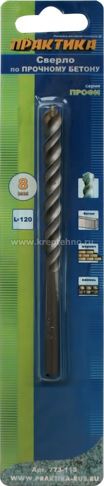 Сверло по бетону 8*120 ц/х ударное, 4-х спиральное Профи, ПРАКТИКА