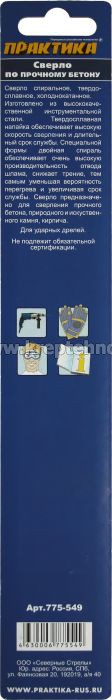 - Сверло предназначено для сверления прочного бетона, природного и искуственного камня, кирпича.