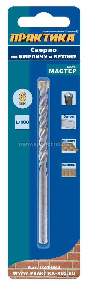 Сверло по бетону 6*100 ц/х ударное, 2-х спиральное Мастер, ПРАКТИКА