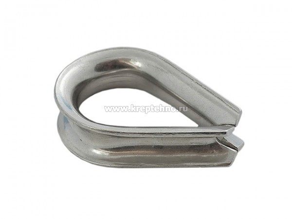 Коуш применяется для установки на трос при изготовлении петли. Делает петлю более плавной, предохраняя трос от перетирания.