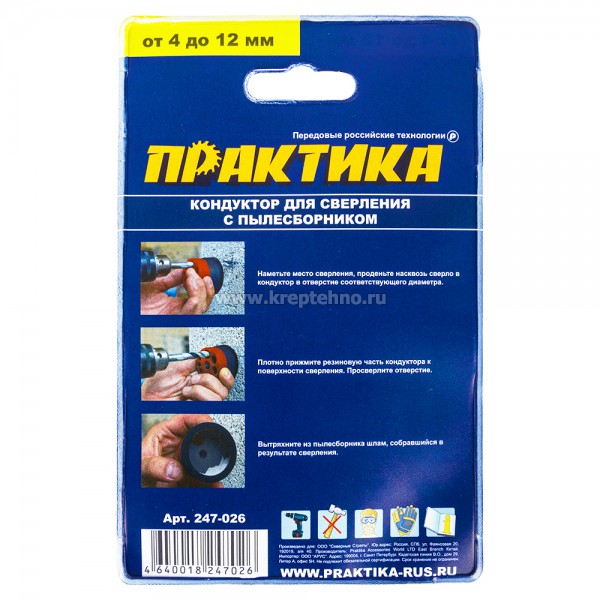 Кондуктор для сверления отверстий 3-12мм в бетоне, кирпиче, камне, плитке, дереве, металле с пылесборником, ПРАКТИКА