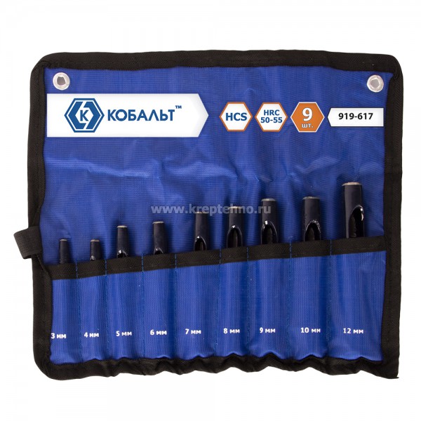 Пробойники круглых отверстий 3-12мм, набор 9шт., КОБАЛЬТ