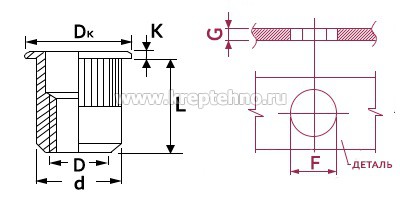 Заклепка резьбовая М12х1,75х22,0, сталь, стандартный борт с насечками Резьбовая заклепка со стандартным бортом имеет небольший бортик в сравнении с другими видами заклепок с уменьшенным и потайным бортом. Этот вид борта предполагает наиболее жесткую фиксацию заклепки за счет повышенной площади прилегания бортика к плоскости детали. Стандартный борт позволяет работать с тонколистовыми металлами. Он также позволяет максимально увеличить скорость создания эффективного резьбового соединения, в том числе и в труднодоступных местах, к которым не предъявляется высоких требований по декоративному оформлению места крепления. Технические параметры: | D | G, мм | F, мм +0,1/-0 | d,мм +0/-0,15 | Dк,мм | k,мм | L, мм | Nm | Арт. | | М3 | 0,5-1,5 | 5,00 | 4,90 | 8,00 | 0,80 | 8,20 | 2 | SF-AC-ITTG M03-C | | М4 | 0,5-2,0 2,0-3,5 | 6,00 | 5,90 | 9,00 | 0,80 | 10,20 11,20 | 5 | SF-AC-ITTG M04-C SF-AC-ITTG M04-L | | М5 | 0,5-2,5 2,5-5,0 | 7,00 | 6,90 | 10,00 | 1,00 | 12,00 15,50 | 9 | SF-AC-ITTG M05-C SF-AC-ITTG M05-L | | М6 | 0,5-3,0 3,0-5,5 | 9,00 | 8,90 | 12,30 | 1,30 | 13,70 18,20 | 14 | SF-AC-ITTG M06-C SF-AC-ITTG M06-L | | М8 | 1,0-3,5 3,5-6,0 | 11,00 | 10,90 | 14,50 | 1,50 | 16,5 19,5 | 25 | SF-AC-ITTG M08-C SF-AC-ITTG M08-L | | М10 | 1,0-3,5 3,5-6,0 | 12,00 | 11,90 | 16,00 | 1,60 1,60 | 17,40 20,40 | 45 | SF-AC-ITTG M10-C12 SF-AC-ITTG M10-L12 | | М10 | 1,0-4,0 4,0-6,5 | 13,00 | 12,90 | 17,00 | 1,70 | 19,30 22,30 | 45 | SF-AC-ITTG M10-C13 SF-AC-ITTG M10-L13 | | М12 | 1,0-4,0 4,0-6,5 | 15,00 | 14,90 | 18,80 | 1,70 | 20,30 23,30 | 82 | SF-AC-ITTG M12-C15 SF-AC-ITTG M12-L15 | | М12 | 1,0-4,0 3,5-6,0 | 16,00 | 15,90 | 22,00 | 2,00 | 23,00 26,00 | 82 | SF-AC-ITTG M12-C16 SF-AC-ITTG M12-L16 | Механические параметры (разрушающая нагрузка): Диаметр , D, мм | SF-AC-ITT-C (L) SF-AC-ITTCG-C SF-AC-ITTG-C (L) | | Вырыв болта, Кн | Скручивание резьбы, Нм | Срез, ,Кн | | М3 | 4.2 | 2 | 2 | | М4 | 6.8 | 5 | 2.8 | | М5 | 11.5 | 9 | 3.9 | | Мб | 16.5 | 14 | 5.8 | | М8 | 25 | 25 | 6.8 | | М10 | 32 | 45 | 9.4 | | М12 | 34 | 82 | 10.3 | Купить Заклепку резьбовую цилиндрический бортик с насечкой в Екатеринбурге и Свердловской области можно в сети магазинов КРЕПЕЖ-СИТИ. ВНИМАНИЕ! На сайте указано наличие товара на складе в Екатеринбурге. Наличие в магазинах просьба уточнять по телефонам. Доставка по Екатеринбургу от 10 тыс. руб. Доставка до ТК бесплатно. Скидки для постоянных покупателей. Интернет-заказы обрабатываются в рабочие дни с 10 до 18 часов.