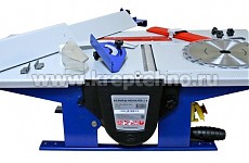 Максимальная ширина строгания за один проход, мм 270 Диапазон глубины строгания за один проход, мм 0÷3 Максимальная глубина пропила, мм 97 Диаметр пильного диска, мм 250 Диаметр посадочного отверстия пильного диска, мм 32 Диапазон углов распиловки вдоль волокон и строгания с помощью линейки, град 0÷45 Диапазон углов распиловки поперёк волокон с помощью приспособления, град –45÷45 Размер рабочей поверхности, мм 913×533 Номинальная частота вращения ножевого вала на холостом ходу, мин-1 7700 Номинальная частота вращения пильного диска на холостом ходу, мин-1 2850 Номинальная потребляемая мощность, Вт 2400 Вид двигателя: асинхронный однофазный с рабочим конденсатором S6 40% Номинальное напряжение, В 230 Номинальная частота питающей сети, Гц 50 Класс машины по СТБ МЭК 61029-1, ГОСТ Р МЭК 1029-1 1 Масса станка (нетто/брутто), кг 47/50,1 Габаритные размеры станка (Д×Ш×В), мм 995×630×353 VIDEO