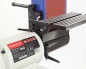 Корпус станка литой, алюминиевый. Рабочих столов два – отдельно для шлифования лентой и диском, это удобно, т. к. при переходе между операциями стол переустанавливать не требуется. Выполнены они из алюминия, имеют паз под установку углового упора.