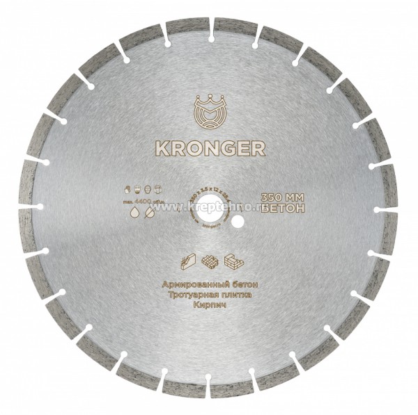 - Алмазный диск Kronger - сегментный, имеет толщину алмазного слоя 3,5 мм, высоту 12 мм.