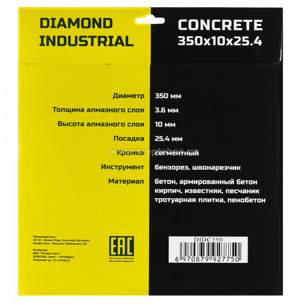 Diamond Industrial 350 мм является новинкой на рынке, и применяется на швонарезчиках и бензорезах.