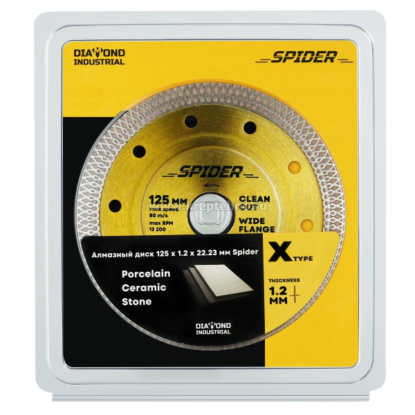 Диск алмазный 125x1,2x10x22,23 SPIDER X-тип (камень, керамогранит, керамика), Diamond Industrial