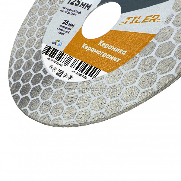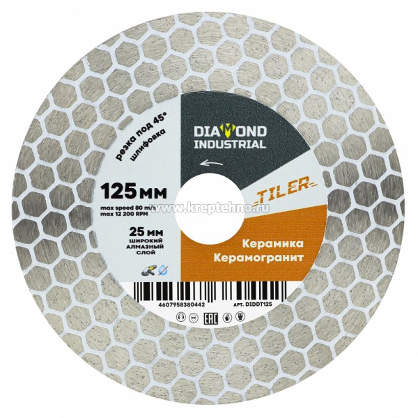 Диск алмазный 125x1,7x25x22,23 TILER (керамогранит, плитка, стекло, мрамор), сухой рез, для запилов под 45 градусов, Diamond Industrial