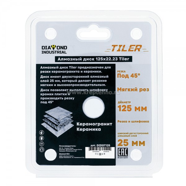 Купить Диск алмазный TILER сухой рез Diamond Industrial в Екатеринбурге и Свердловской области можно в сети магазинов КРЕПЕЖ-СИТИ.