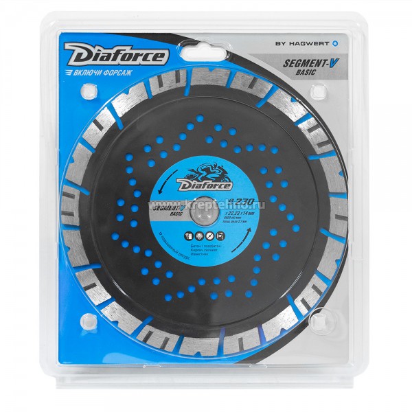 Купить Диск алмазный по армированному бетону, мрамору DIAFORCE Segment-V Basic сухой рез в Екатеринбурге и Свердловской области можно в сети магазинов КРЕПЕЖ-СИТИ.