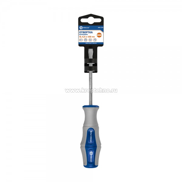 Отвертка плоская SL 6,0 х 100мм КОБАЛЬТ 646-270 предназначена для завинчивания/отвинчивания саморезов, шурупов, винтов при проведении строительно-монтажных работ, сборки/разборки, ремонта различных механизмов, узлов и агрегатов.