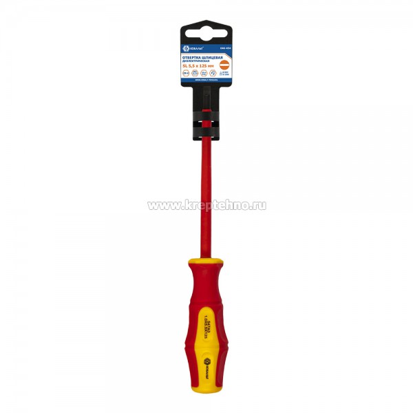 Отвертка диэлектрическая плоская SL 5,5 х 125 мм КОБАЛЬТ 646-454 предназначена для завинчивания/отвинчивания винтов, шурупов и саморезов находящимися под напряжением до 1000 Вольт.при проведении строительно-монтажных работ, сборки/разборки, ремонта различных механизмов, узлов и агрегатов.
