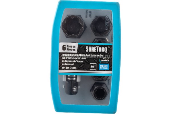Набор спиральных торцевых головок-экстракторов с адаптером SureTorq 0440-0604 служит для демонтажа поврежденных болтов и гаек. Подходят для работы с ударным гайковертом, трещоточными или рожковыми гаечными ключами.
