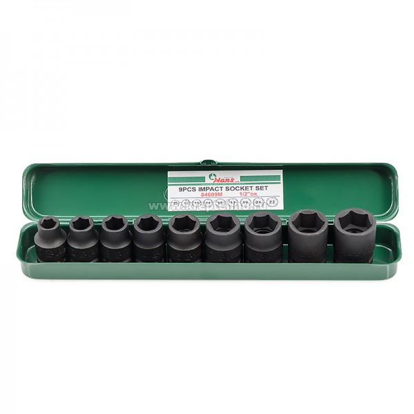 Набор головок ударных 1/2" 9 предметов (11, 12, 13, 14, 16, 17, 19, 21, 22мм) в металлическом кейсе, HANS