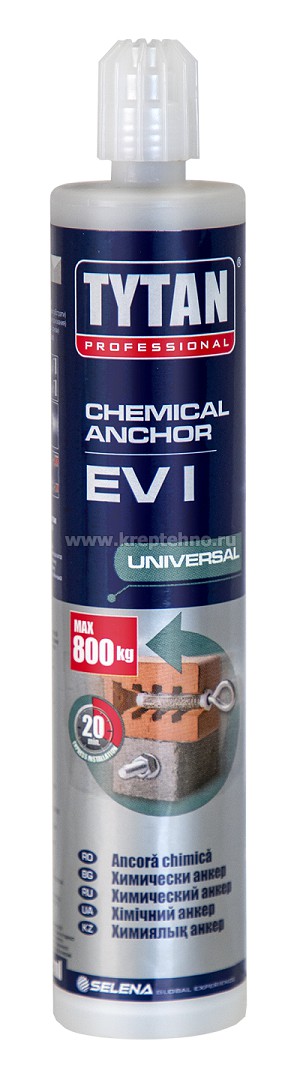 Химический анкер TYTAN PROFESSIONAL EV-I универсальный 300 мл  служит для фиксации крепежа в твердые основания, такие как: бетон, натуральный и искусственный камень, пустотелый кирпич, газобетон.