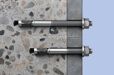 Во время затяжки конический болт перемещается в распорную втулку и расширяет ее, прижимая к стенкам просверленного отверстия.