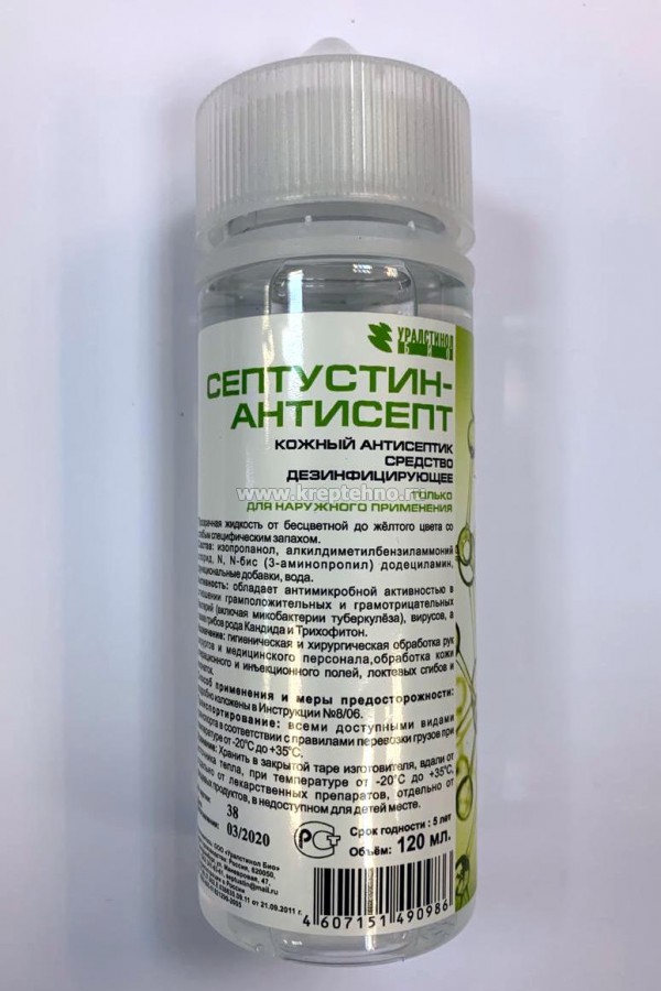 Купить Средство дезинфицирующее Септустин-антисепт (кожный антисептик) в Екатеринбурге и Свердловской области можно в сети магазинов КРЕПЕЖ-СИТИ.