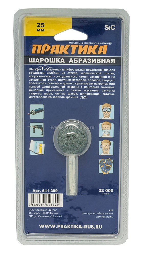 641-299 Шарошка шлифовальная 25мм, хв 6мм, шарообразная, карбид кремния, ПРАКТИКА шт 0.04 В наличии 134 134 В корзину